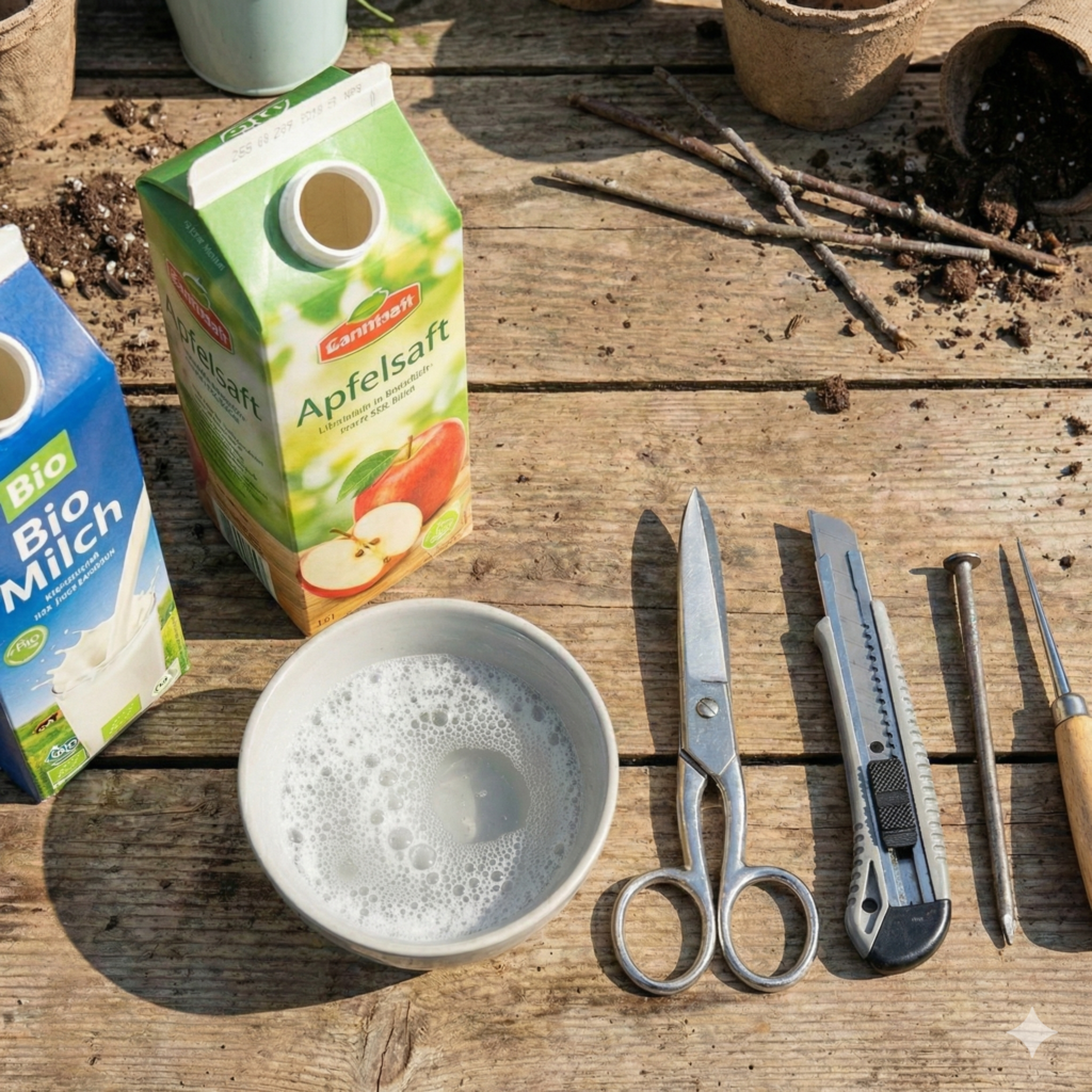 Bevor du jetzt Geld ausgibst, wirf mal einen Blick in deinen Gelben Sack! Leere Milch- oder Saftkartons (Tetra Paks) sind nämlich pures Gold für uns Exoten-Gärtner. Heute zeige ich dir, wie du aus Müll die perfekten Anzuchttöpfe baust – kostenlos, nachhaltig und super effektiv.